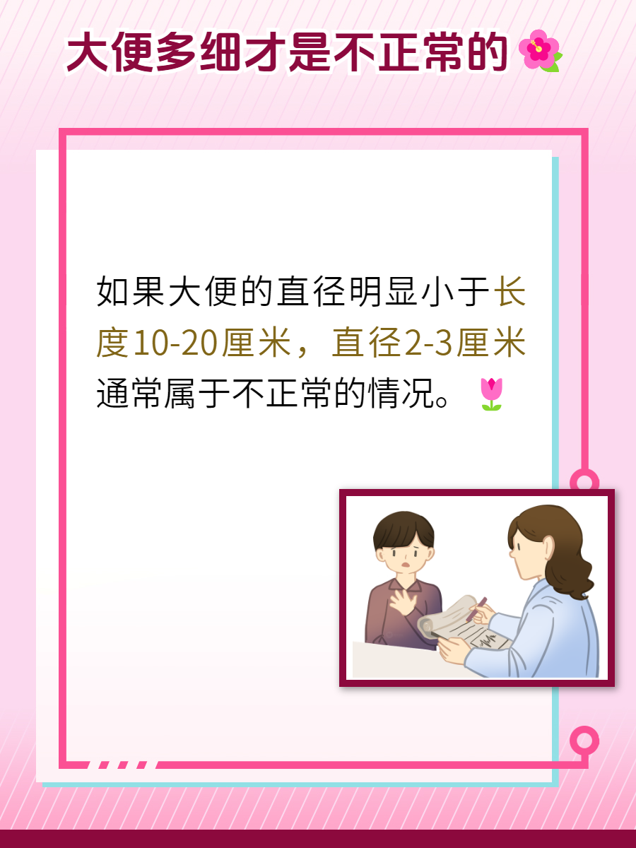🍀好的,谢谢你,医生,我一定会牢记你的嘱咐的。张先生微笑着回复我。总而言之,我想告诉大家,大便的细度是我们判断肠道健康状况的重要指标之一。如果我们发现自己的大便变细或者形状异常,就应该及时就医,进行相关检查和治疗。同时,我们也应该关注自己的饮食和生活习惯,保持肠道的健康和通畅。